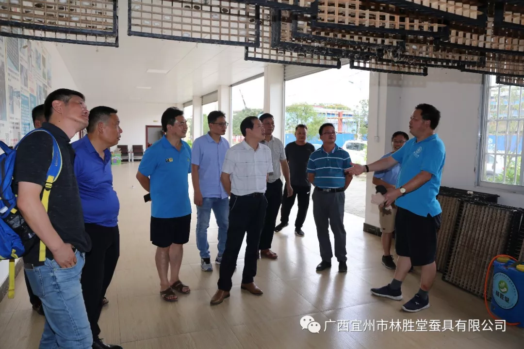 华南农业大学刘吉平教授、苏州大学国家211重点学科《现代蚕丝学》学科带头人贡成良教授及宜州农业农村局领导莅临我公司考察指导。 刘吉平教授一行考察了林胜堂自主研发的自动化、机械化养蚕机具和生产线的生产情况。华南农业大学刘吉平教授、苏州大学国家211重点学科《现代蚕丝学》学科带头人贡成良教授及宜州农业农村局领导莅临我公司考察指导。 刘吉平教授一行考察了林胜堂自主研发的自动化、机械化养蚕机具和生产线的生产情况。并与我公司相关负责人进行沟通交流,听取我公司相关负责人介绍了现代化、规模化养蚕与传统养蚕的对比。刘吉平教授对林胜堂自主研发的自动化、机械化养蚕机具在现代化养蚕模式中起到了提质增效的重要作用表示肯定,并对设备的创新升级,降低成本提出了宝贵建议。